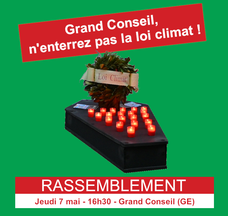 Cette fois c’est la bonne : nous nous sommes rassemblé-e-s en février, puis mars pour conjurer le Grand Conseil de repêcher le projet de loi cantonale sur le climat. Mais l’objet n’a pas été traité. Il le sera jeudi 7 mai. Et nous serons là de nouveau.